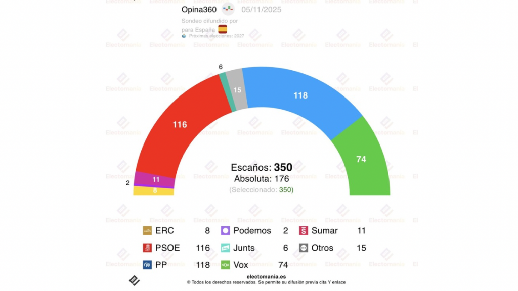 El sondeo de Opina360, que hace un mes otorgaba una victoria clara al Partido Socialista, revisa ahora sus cifras y refleja un empate técnico con el Partido Popular, frenando el impulso de los socialistas y reequilibrando el panorama político.